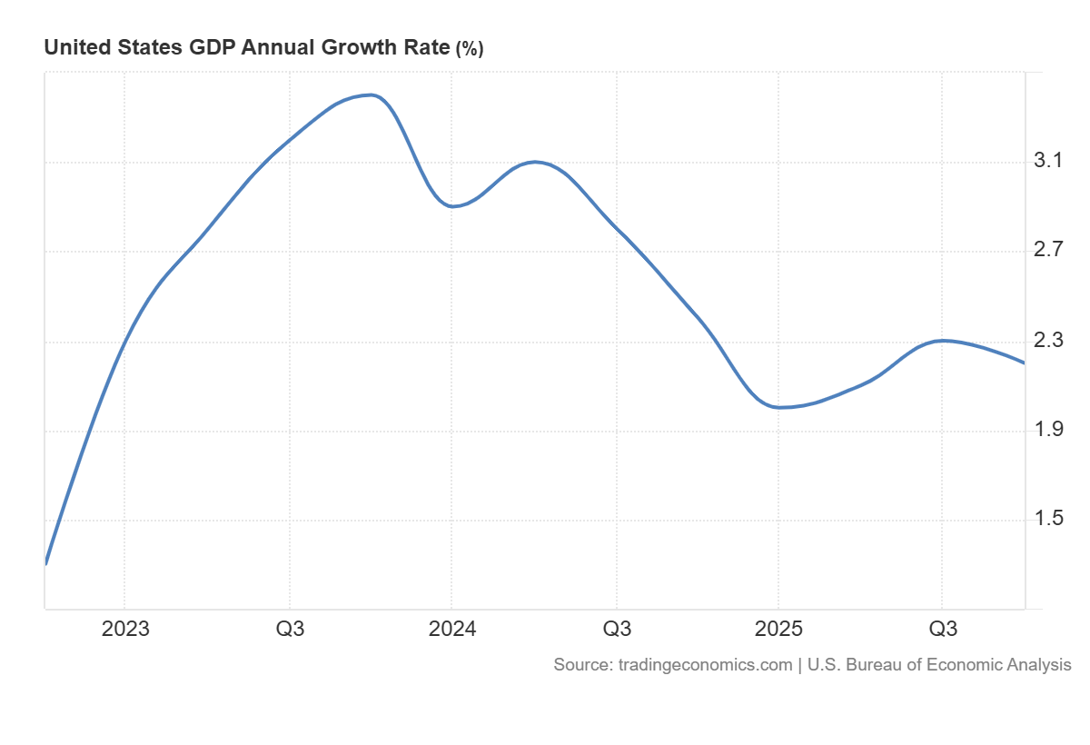 L'economia statunitense è cresciuta solo dell'1,4% su base annua nel quarto trimestre del 2025, ben al di sotto delle previsioni del 3%, secondo le stime preliminari del PIL reale. E nell'intero 2025, l'economia statunitense è cresciuta del 2,2%, ovvero al di sotto del tasso del 2,4% registrato nel 2024. Le vanterie di Trump e dei suoi consiglieri sul boom economico degli Stati Uniti non sembrano più così convincenti alla luce di questi dati. Gli investimenti in attrezzature e prodotti software sono aumentati di oltre l'8% nel 2025, probabilmente grazie al boom degli investimenti nell'Intelligenza Artificiale (IA). Senza di esso, nel 2025 la crescita del PIL reale degli Stati Uniti sarebbe stata ben al di sotto del 2%.