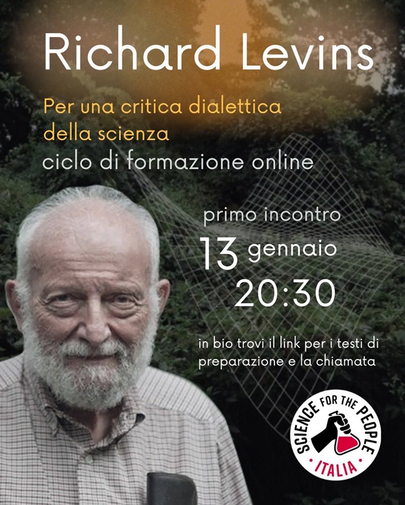 Durante questo primo incontro del ciclo sul pensiero di Richard Levins sarà analizzata la sua attività epistemologica rispetto a come si configura la scienza nella società capitalistica, articolando la discussione in due momenti.